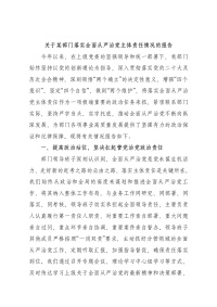 关于某部门落实全面从严治党主体责任情况的报告(2981字)