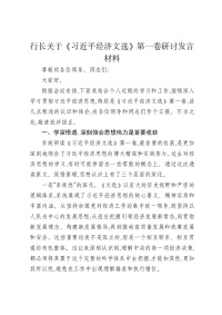 行长关于《习近平经济文选》第一卷研讨发言材料