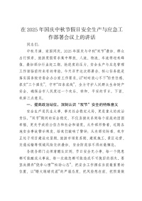 在2025年国庆中秋节假日安全生产与应急工作部署会议上的讲话