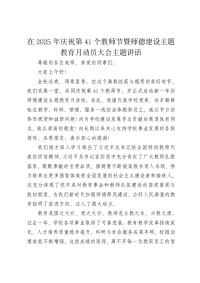 在2025年庆祝第41个教师节暨师德建设主题教育月动员大会主题讲话