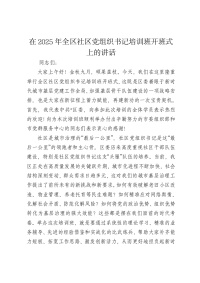 在2025年全区社区党组织书记培训班开班式上的讲话