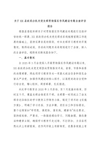 关于XX县政府办机关党支部贯彻落实作风建设专题自查评估报告
